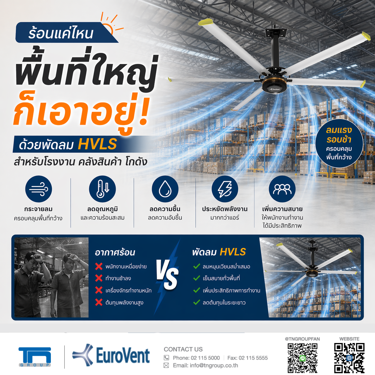 HVLS เน้น “กระจายลมครอบคลุมพื้นที่กว้าง”