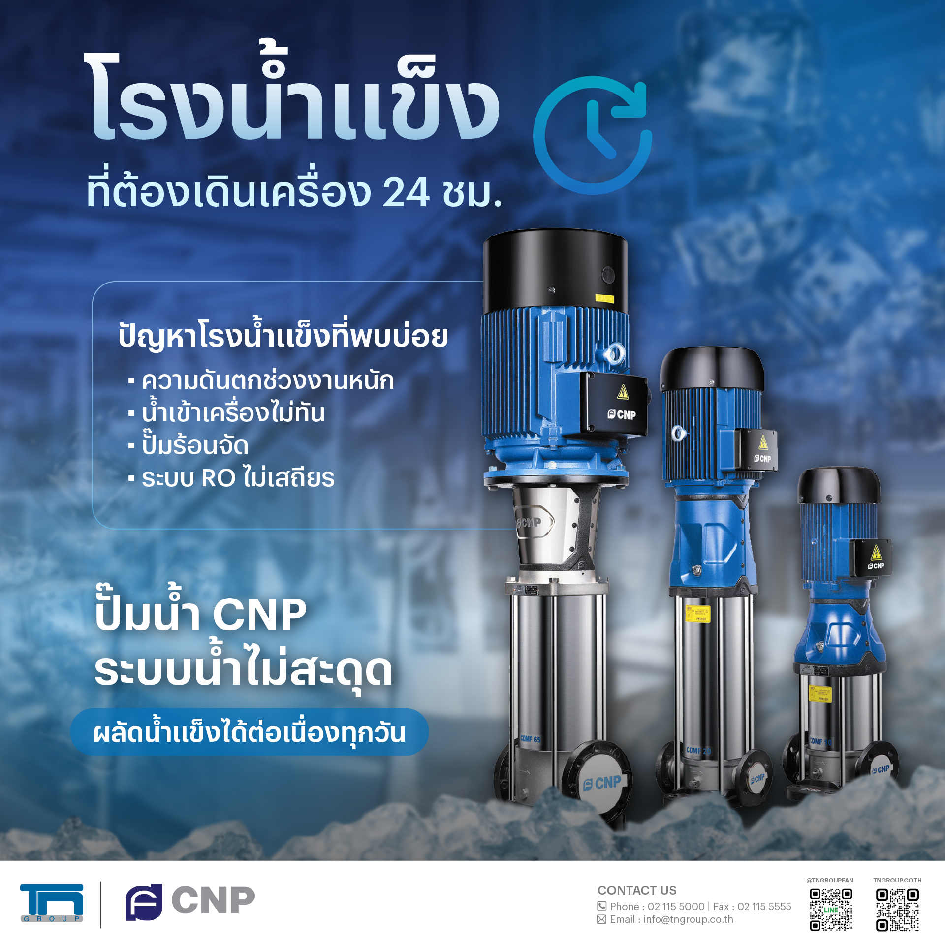 ปั๊มน้ำอุตสาหกรรม CNP สำหรับโรงน้ำแข็ง ระบบน้ำเสถียร เดินเครื่อง 24 ชม.